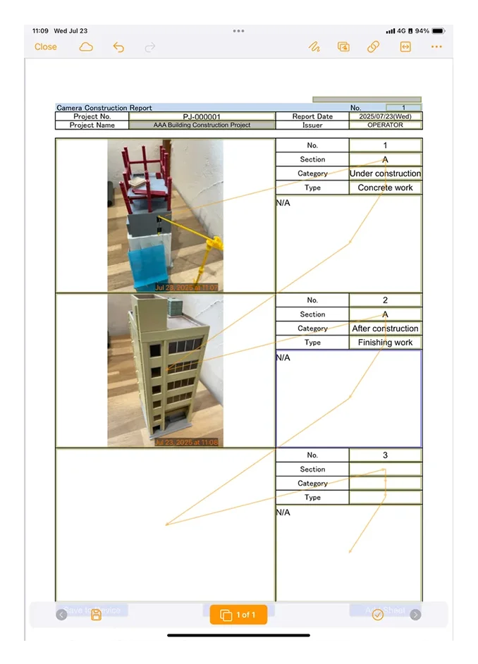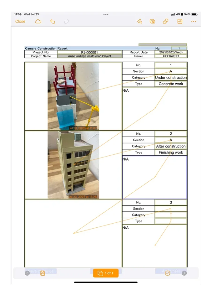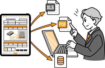 Collection, compilation, analysis, and other necessary information after reportingAfter recording, on-site reports can be output in a batch on a weekly or monthly basis, photo data that is difficult to organize can be automatically renamed, and report data can be automatically sorted, significantly reducing the amount of post-processing work required after filling out reports.