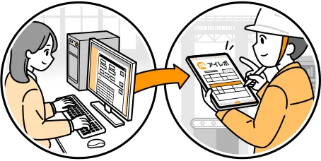 · Even though the factory does not have a network, by installing an app on a SIM-free tablet, it is now possible to exchange electronic data entered on-site with electronic information on a PC on the in-house network.