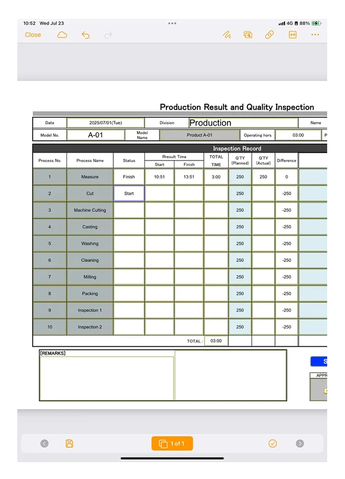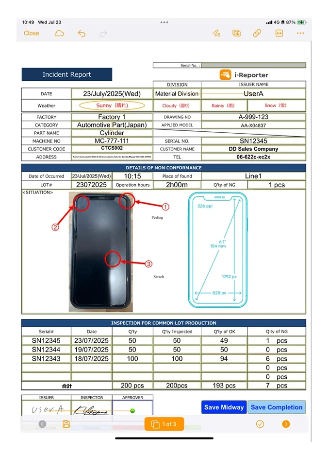 When the system was first introduced, it was used to digitize checklists and other documents that had previously been used on paper at the production site, but it was discovered that i-Reporter reports could be created without worrying about the number of pages.