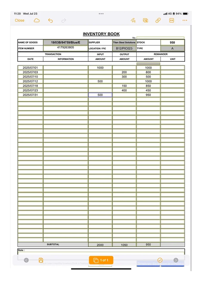 Inventory Management Daily Report