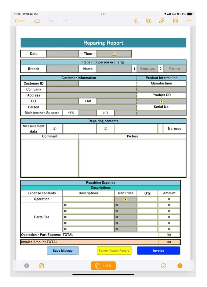 Previously, reporting work required printing out a blank Excel form, placing it in a binder, writing the form by hand on the paper at the site and taking a photo with a smartphone, then entering the clean copy into Excel once back in the office, then connecting the smartphone and pasting the photo into the Excel file. This can now be done on an iPad.