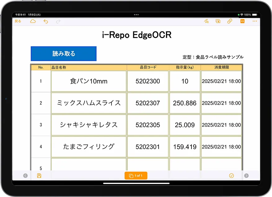記入中のi-Reporter帳票に読み取り結果が記録されます。-
