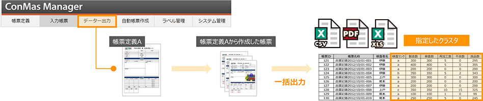 By outputting to CSV, PDF, or Excel, you can easily compile and analyze the data using Excel, etc.