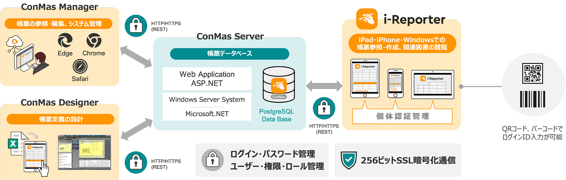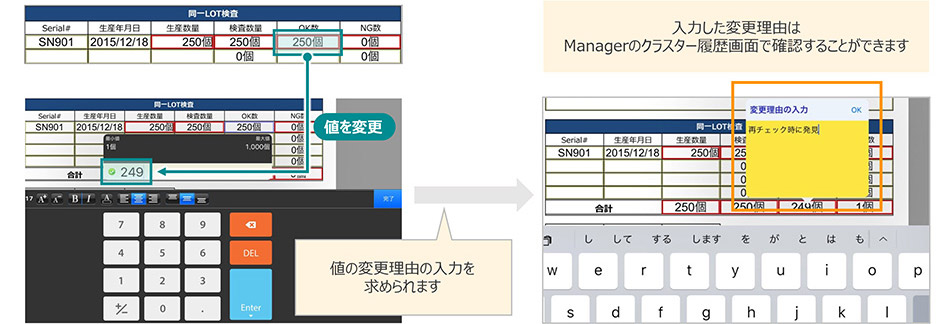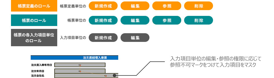 It realizes the approval management required for business systems and detailed authority and role management for each document. It also provides thorough security measures against information leaks, such as user management, password management, and individual iPad authentication management.