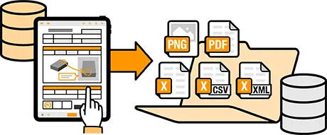 i-Reports created with the i-Reporter app can be output in CSV, PDF, or Excel format all at once.