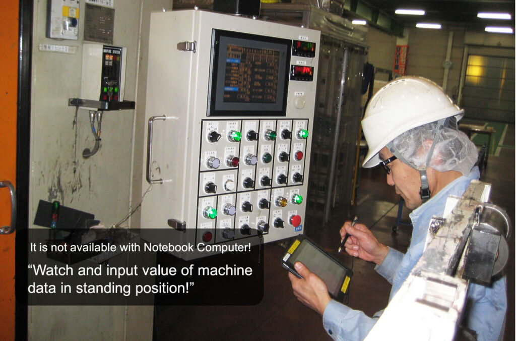 A: We feel that Laptop PC is not appropriate to use at site essentially because we can not enter the data on note PC while standing, and then Laptop PC is expensive but break down easily. Manufacturing sites are hot and humid. There also is dirt and dust. Laptop PC’s will frequently brake down.