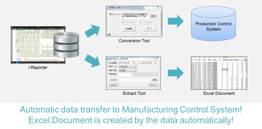 - ISO9000-related Excel reports can be transferred directly to i-Reporter, making it easy to go paperless.